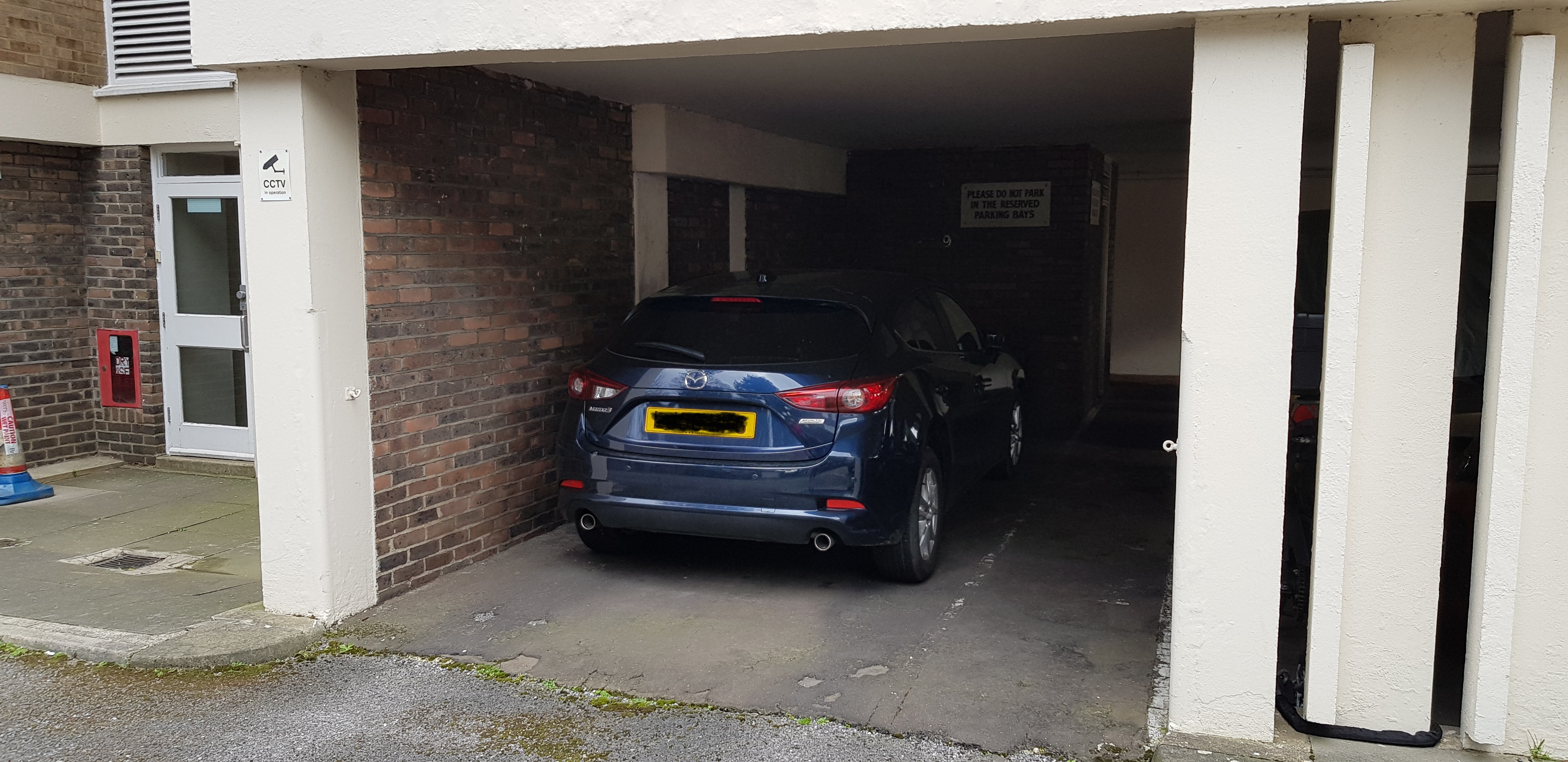 Protected underneath Hamble Court, Broom Park at ground level - high clearance suitable VW Camper etc |